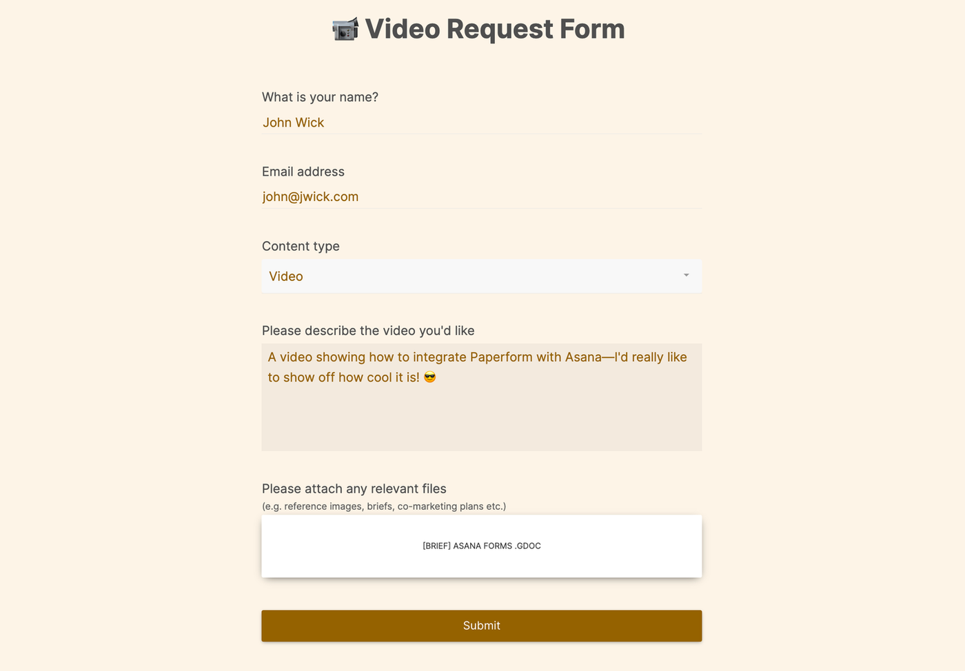 (Source: Asana) An example of a Video Request Form made with Paperform (Paperform)