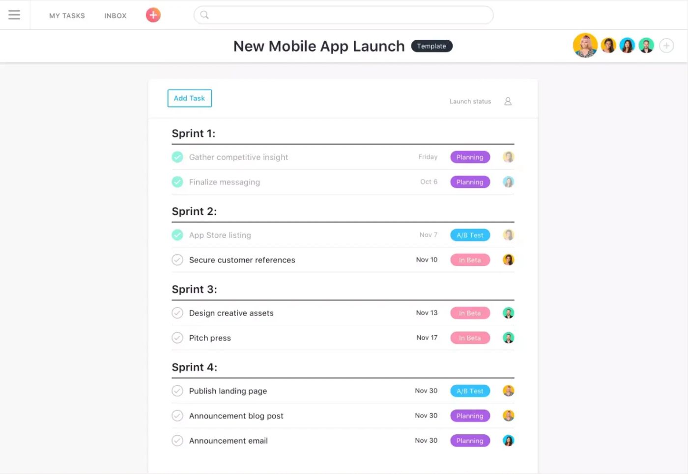 (Image via Asana)When you think about typical project management platforms, you probably picture something similar to what Asana offers. It starts with your big, meaty project and then splits it into tasks and even subtasks in a list style—all with team members and due dates clearly assigned, and even an option for color-coded tasks.