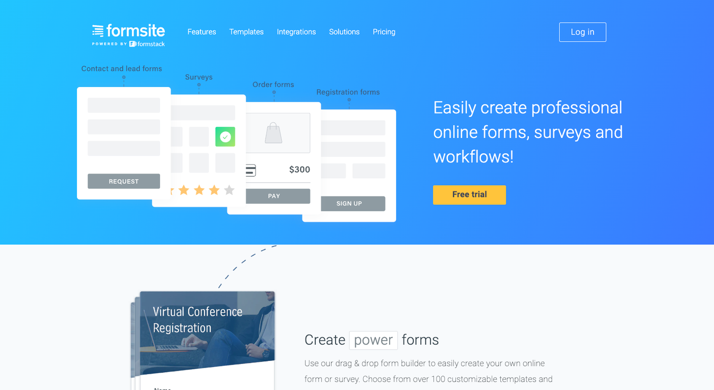 What it lacks in modern design it makes up for with functionality. It’s easy to edit and customise forms to your liking. You can base your design on one of the 400+ templates available or add your own CSS and HTML code to really make it your own.