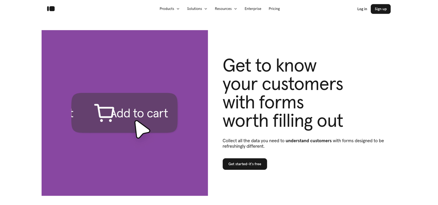 Typeform’s excellent design starts with its form builder app. It’s easy to create your custom form by changing fonts, adding cover pages and uploading brand assets and videos. The process is intuitive and within a few minutes you’ll have built your own immersive experience.