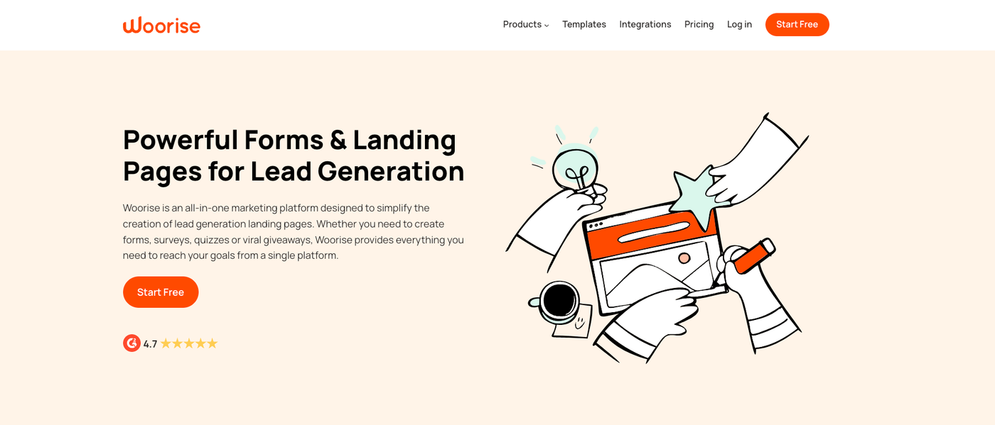 Woorise looks a little different from the other items on this list, as it doesn’t market itself first and foremost as a form builder, but forms are at the core of what it does. It’s an all-in-one lead generation platform that allows you to create a wide range of interactive campaigns such as promotions, landing pages, forms, surveys, and quizzes.