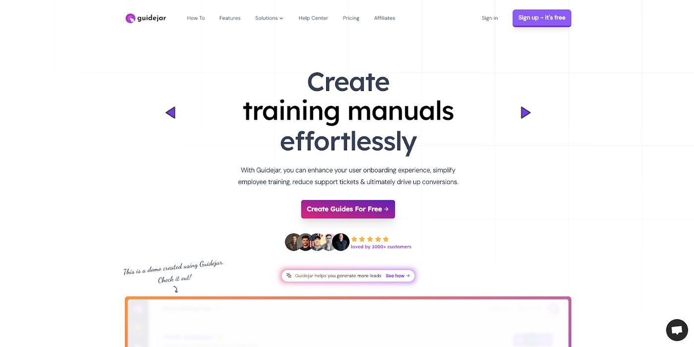Guidejar is mainly used to create interactive product demos and guides, as well as creating and managing help centers and product guides without coding.