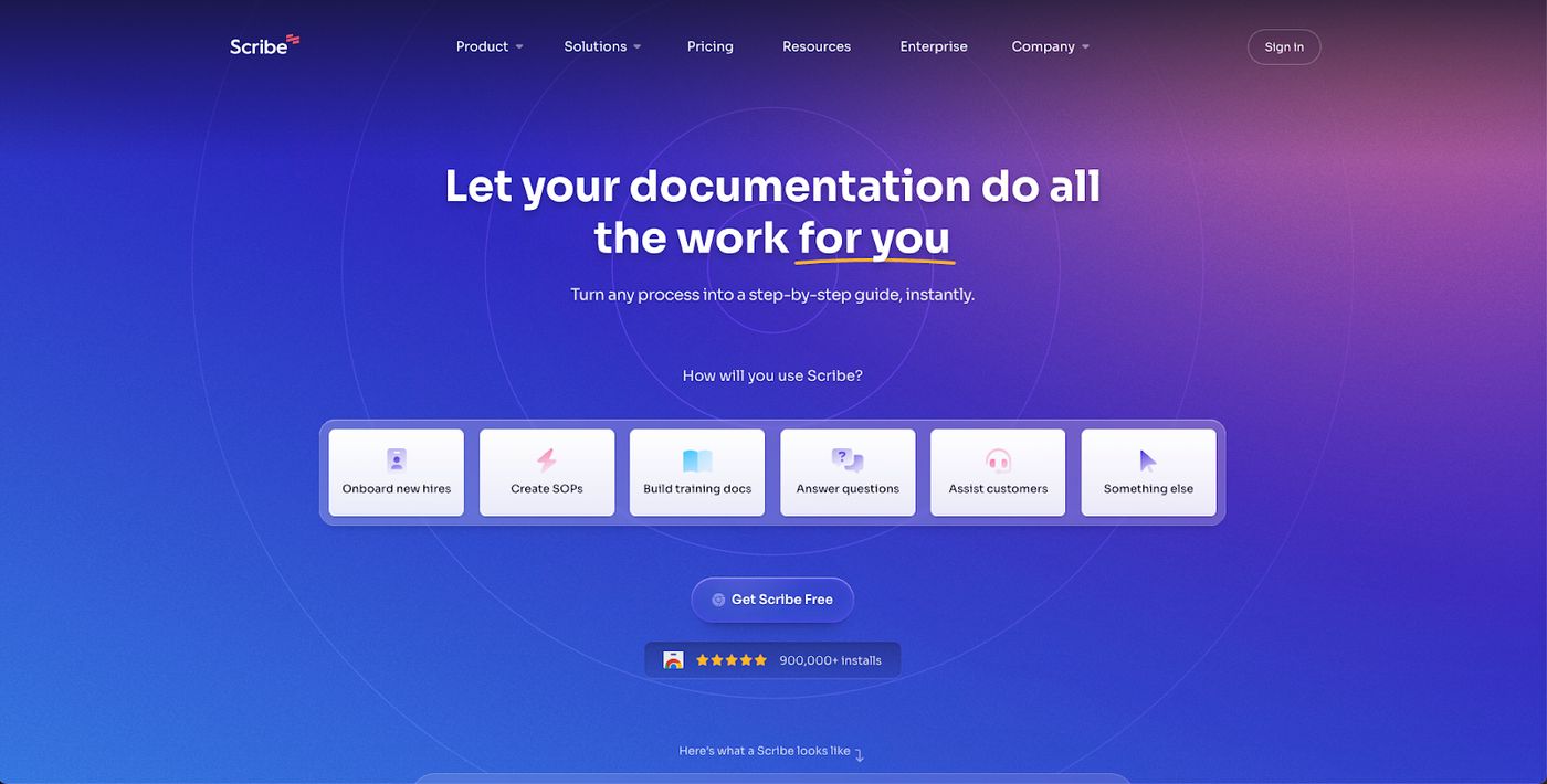 Scribe is a documentation tool designed to quickly create detailed step-by-step guides and tutorials with screenshots. Similarly to Dubble, Scribe has a browser extension that captures your workflow as you work through a process on your screen and automatically generates a guide with screenshots and instructions.