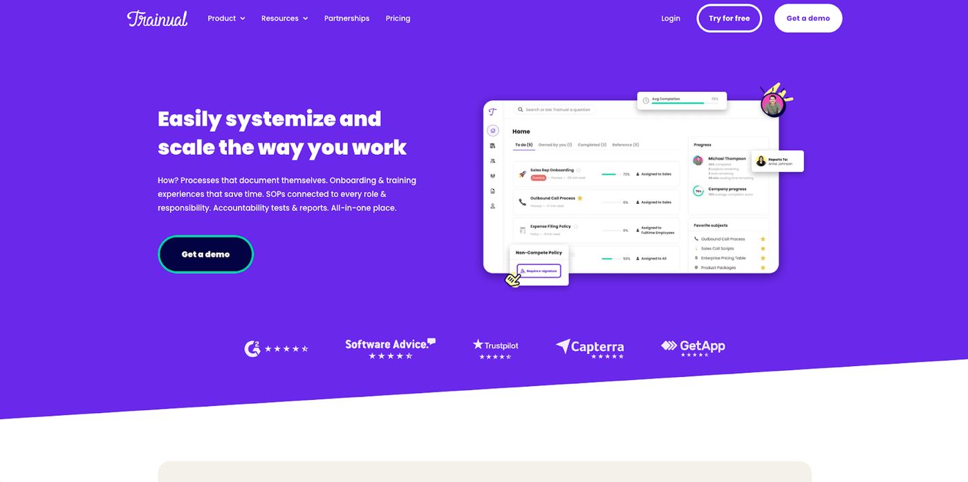Used mostly by HR managers and ops leaders, the platform is designed to streamline the process of training and onboarding employees. Trainual also offers free templates to guide you in creating effective training documentation for your employees.