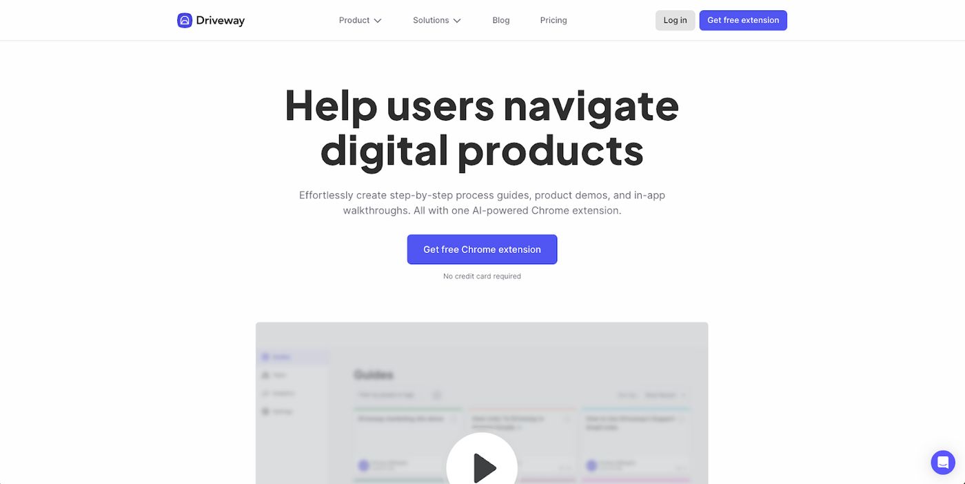 Driveway is an AI-powered Chrome Extension that captures user actions to automatically generate instructional content, product demos, or interactive walkthroughs. Driveway guides can be shared as screenshot guides, embedded as a Product Demo in a Help Center or Wiki, or added to any website as an in-app walkthrough.