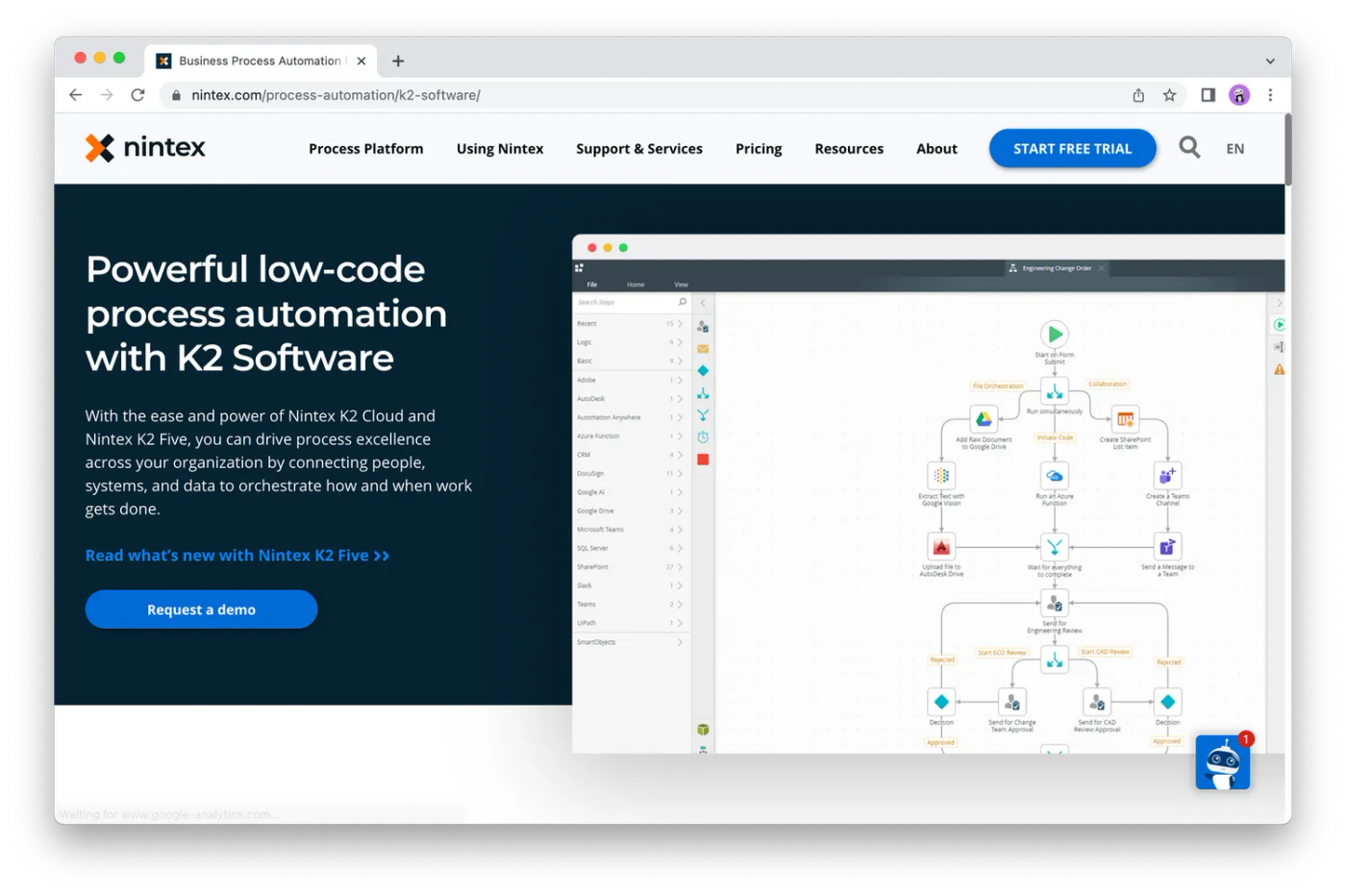 K2 Platform also integrates well with many popular platforms, including Microsoft Cognitive Services and PowerBI. A potential downside, though, is that it can cause delays during the instalment and deployment phases.