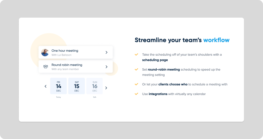 People and teams use Calendly because it’s simple and it does what it says on the box. It's a great tool.