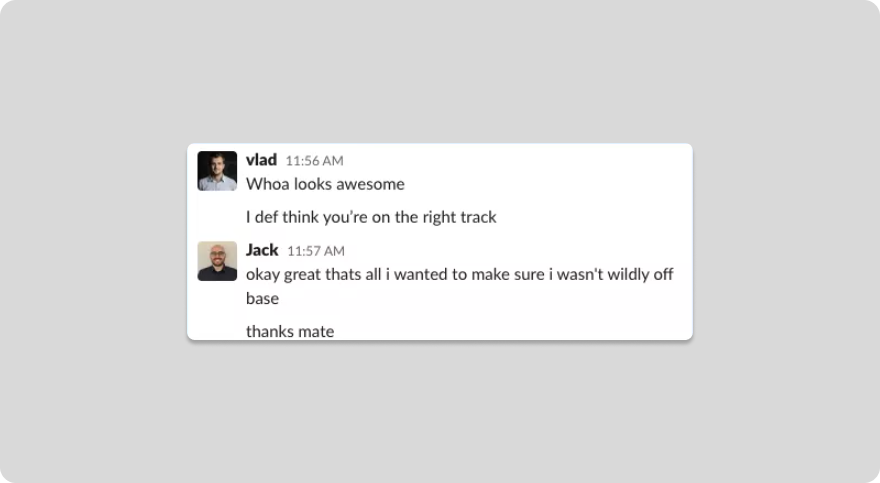 Our team does this all the time, but we also make sure it’s the exception rather than the rule. It’s important not to rely purely on these detached forms of communication and sprinkle in verbal, face-to-face feedback too.