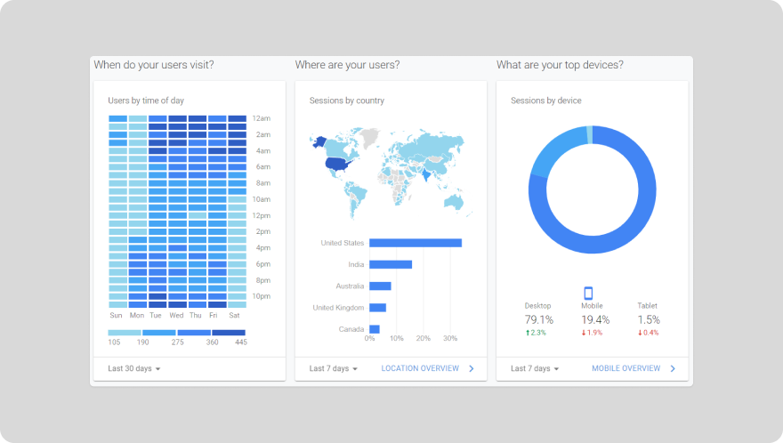 You can even determine whether users access your site most commonly through a desktop computer, mobile phone or tablet. This can provide insights into what kind of content best suits their consumption.