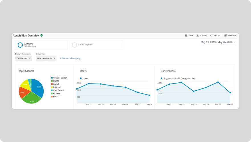 | New vs returning | An increase in new traffic usually means your social or content campaigns are working. |