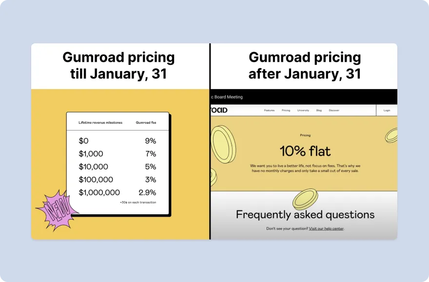 Gumroad has been a popular solution for selling digital products for over ten years. But on December 17, 2022, during a public board meeting, it introduced a new pricing structure that effectively increased fees on the platform by 300% overnight.