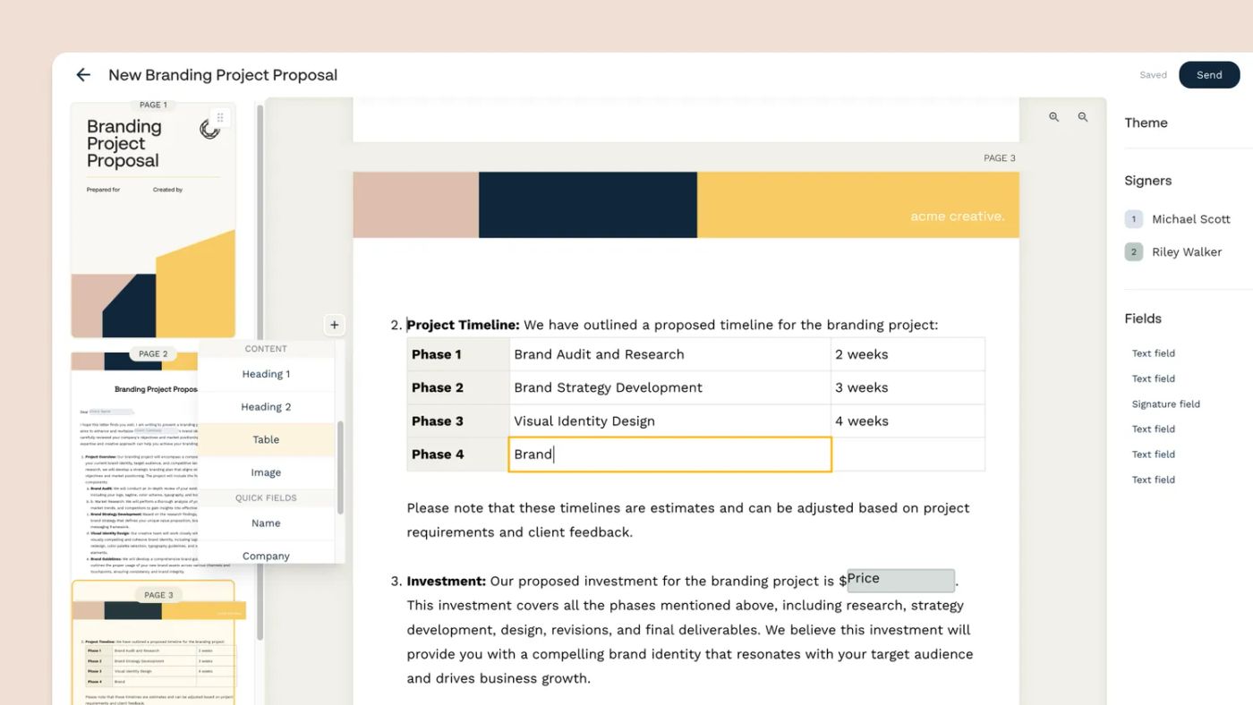 - Align expectations upfront: Your contract needs to outline all of the nuts and bolts of what you’re agreeing to, like timelines, payment terms, and plenty more. It’s a great way to make sure everybody is on the same page before you actually get rolling.