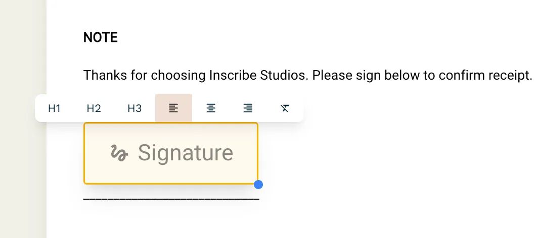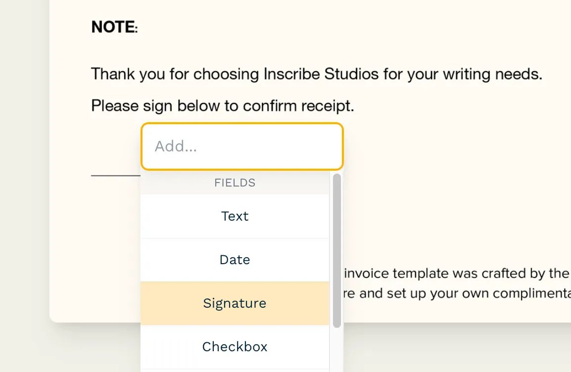 1. Tangible acknowledgment: Incorporating a signable field acts as a formal acknowledgment from the client. When they sign, they confirm not only the receipt of the invoice but also their agreement to the payment terms you've outlined. It adds an extra layer of commitment.