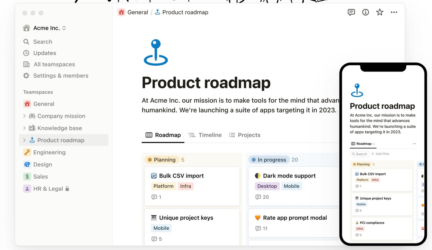 Best for project management plus note-taking, knowledge sharing, and content creation.