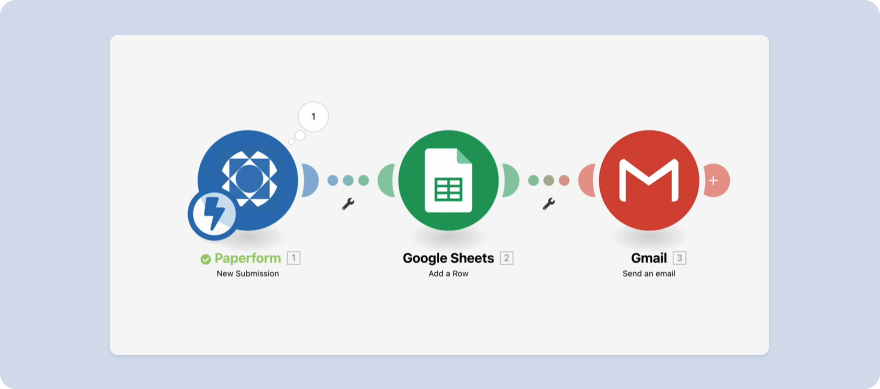 For example, to share your new blog article with your social media audience, you might use a WordPress → Twitter integration. Or perhaps you want to send an email out after each newsletter form submission? You could use a Paperform → Gmail pairing.
