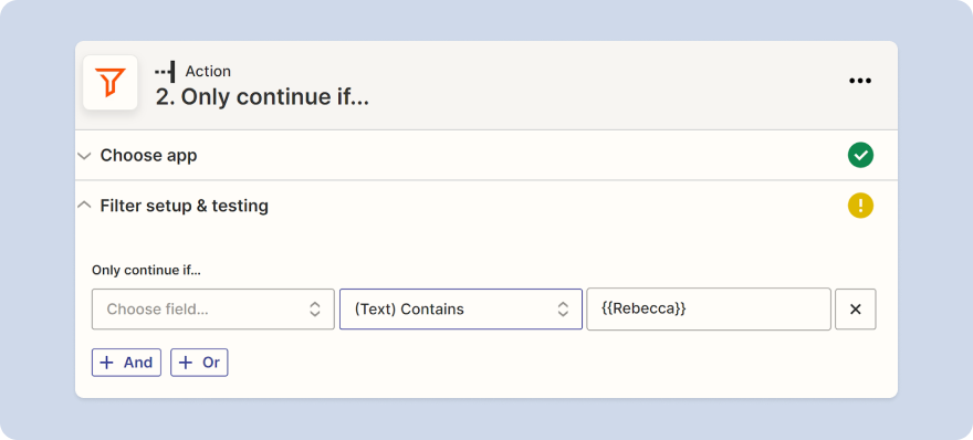 You can add filters to your Zaps if you need to design a more complex workflow. For example, you might set your conditions so that data is only transferred when a respondent enters certain information.