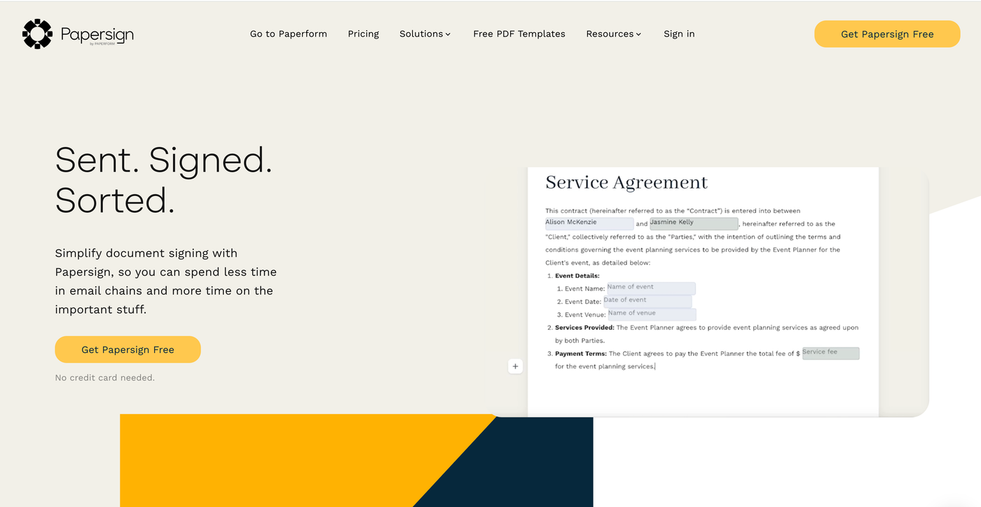 If you use Paperform + Papersign, you can send a form and get submissions, pipe the submission data into the eSignature doc, and then get that signed, all in one hit. We've also ensured our referral program (10% off for each person referred) includes Papersign.