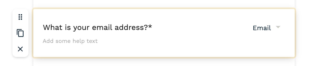When you click into a question, the configuration for that question opens on the right, and the focus question is highlighted. Buttons to move, duplicate or delete the question are now to the left of the focussed question.