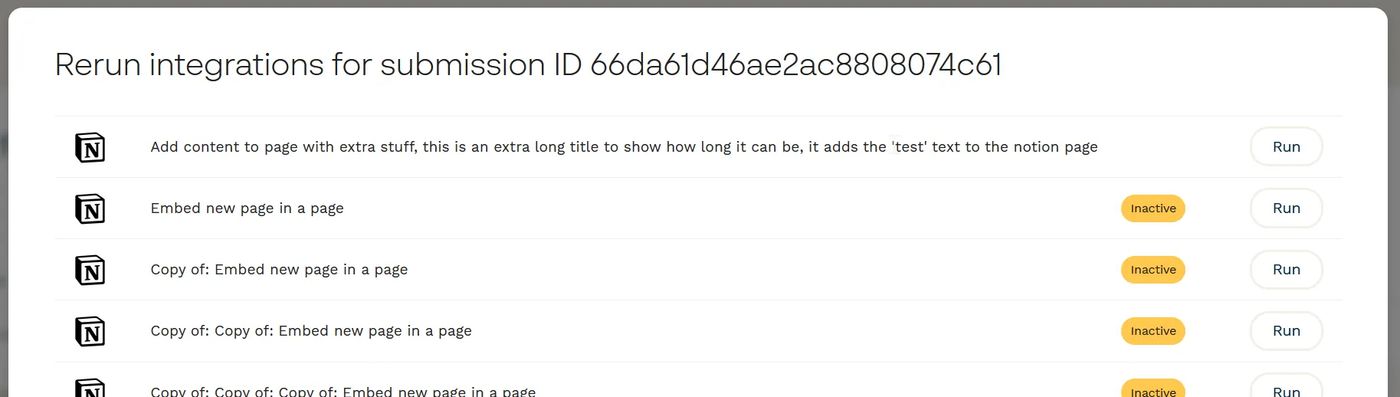 People love using our direct integrations to connect their forms with heaps of popular services - but sometimes things go wrong! You might have changed your mind about how the integration should work, or forgot to set it up before sending your form out and have a few submissions you want to trigger the integration on after the fact.