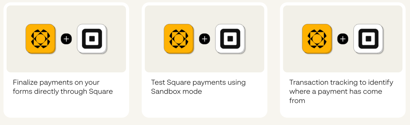 Our free Square integration means you can begin accepting payments with no additional fees. Once your form is ready, you can easily connect it to your Square account and begin processing payments.