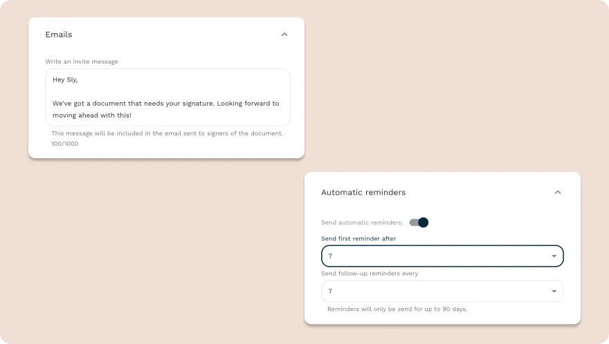 Tired of sending manual reminders for pending documents? Say hello to Automated Reminders. You can now schedule automatic reminders for pending documents and even specify how often these emails should be sent. Leave manual reminders in the past.
