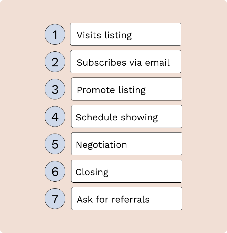 In real estate, it needs to look a little different from a traditional sales funnel. Your funnel should be a series of web pages that customers navigate through as they move from being first-time or unqualified visitors to your site, to qualified leads when they choose to either contact you or provide their contact information.