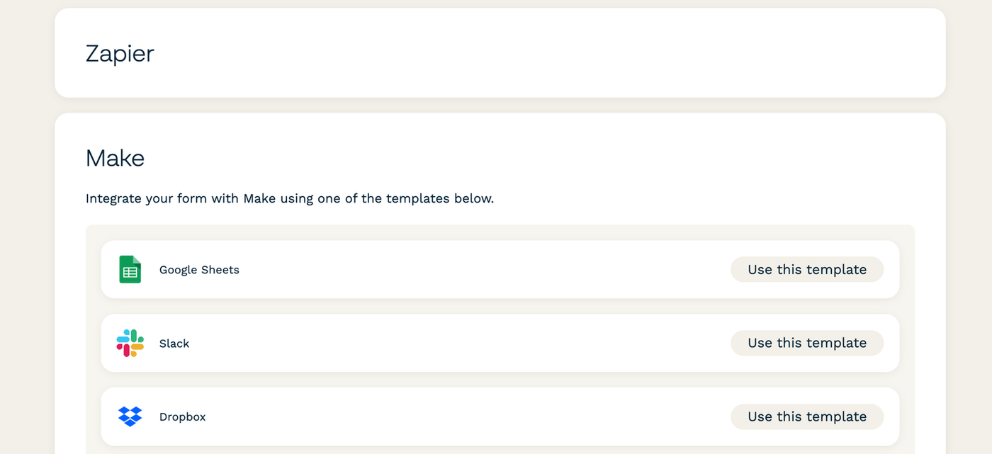 Paperform supports over 3,000 integrations through Make and Zapier, so if you're looking to connect to one of your existing business tools, chances are it’s available.