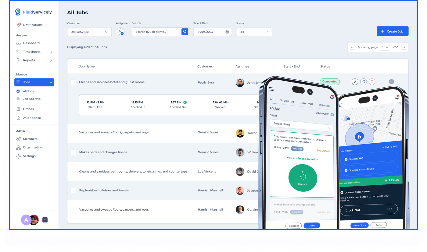 FieldServicely is a field service management platform that streamlines job scheduling, technician tracking, and timesheet management. It automates payroll, invoicing, and work orders, helping businesses improve efficiency and keep teams connected in real time.