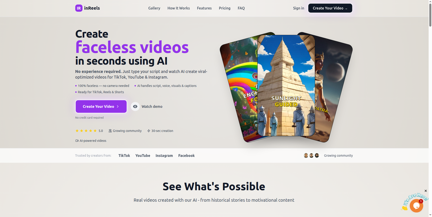 inReels AI helps you create videos in seconds using AI. Turn text, PDFs, or images into videos. Repurpose content for YouTube, TikTok, Reels, and more.