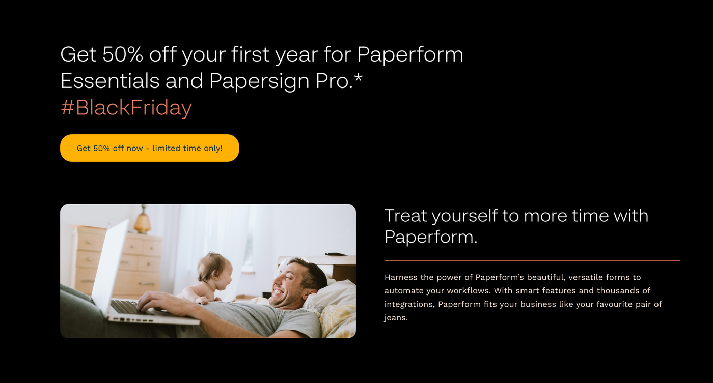 | Paperform | 50% off first year | Nov 14 - Dec 1 | Get Deal |