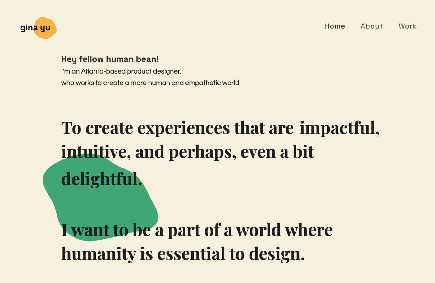 Gina Yu's portfolio is a testament to her ethos of human-centered design. The site exemplifies clarity and effectiveness, integrating her personal philosophy with her professional achievements.