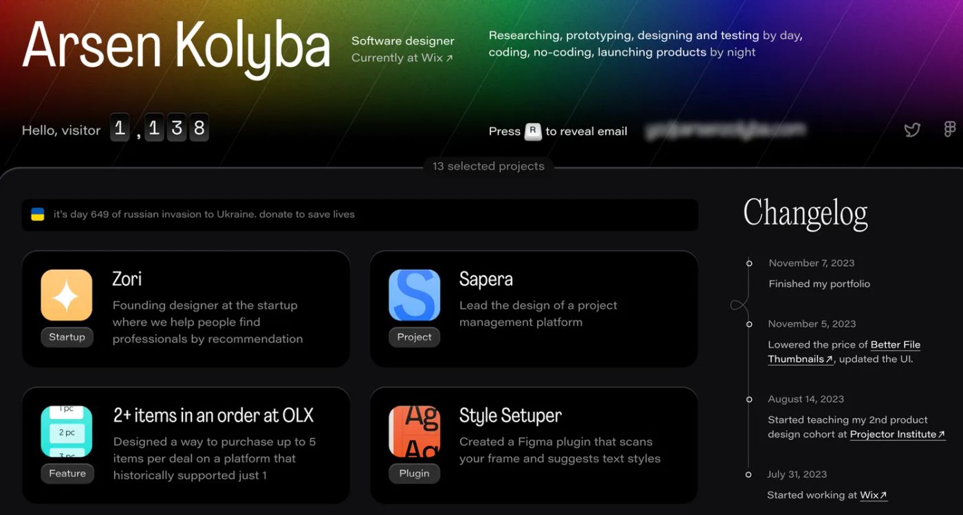 Arsen Kolyba's portfolio is a mix of innovation, practicality, and user-focused visual design that spans a variety of platforms and tools.