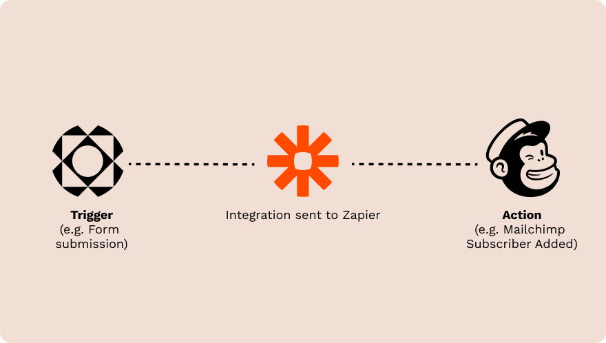 Within the Zapier editor, you’d set up a trigger (a questionnaire is submitted) which would kick off an action (an automated email gets sent with your ESP). That setup is what you call a “Zap.” Just like this example, it’s possible to create a Zap for all kinds of tasks, including multi-step triggers and actions.
