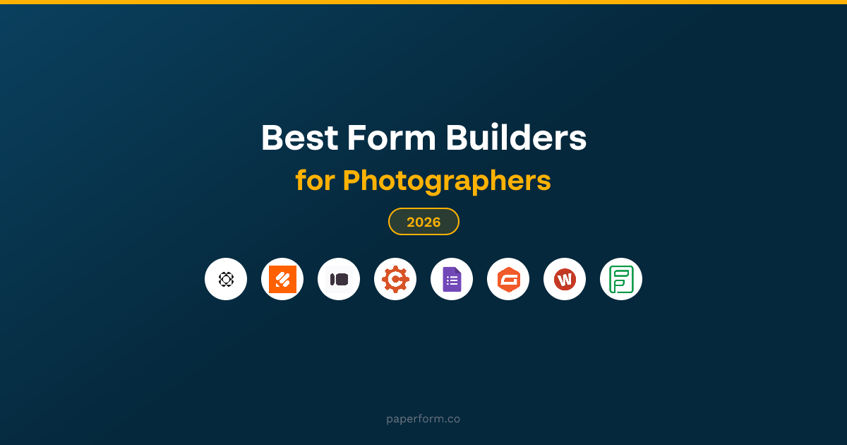 We ranked form builders for photographers by: design quality (the form should match your portfolio's aesthetic), payment processing (deposits, package pricing, retainers), calculation power (dynamic pricing based on session type, duration, add-ons), and contract handling (e-signatures for model releases and booking agreements).