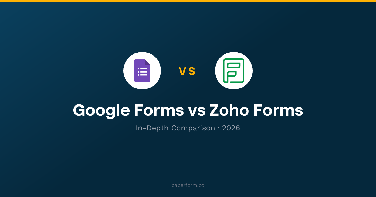The ecosystem question is decisive for many teams: if you're in Google Workspace, Google Forms is free and frictionless. If you're in the Zoho suite, Zoho Forms connects natively to your CRM, helpdesk, and accounting tools. If you're in neither ecosystem — or outgrowing both — look at standalone form builders that integrate with everything without locking you in.
