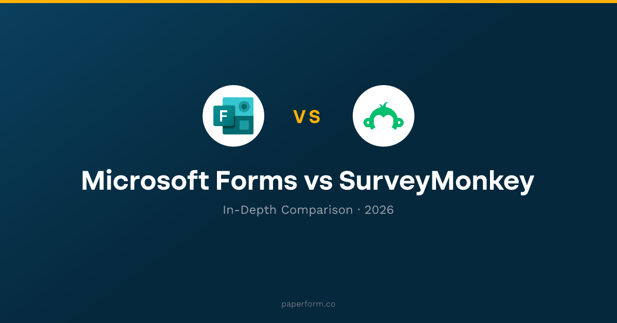 The Microsoft Forms vs SurveyMonkey comparison presents a frustrating trade-off: free-but-basic versus capable-but-expensive. Paperform offers the middle ground -- survey capability with form versatility, payment collection, and calculations at $29/month.