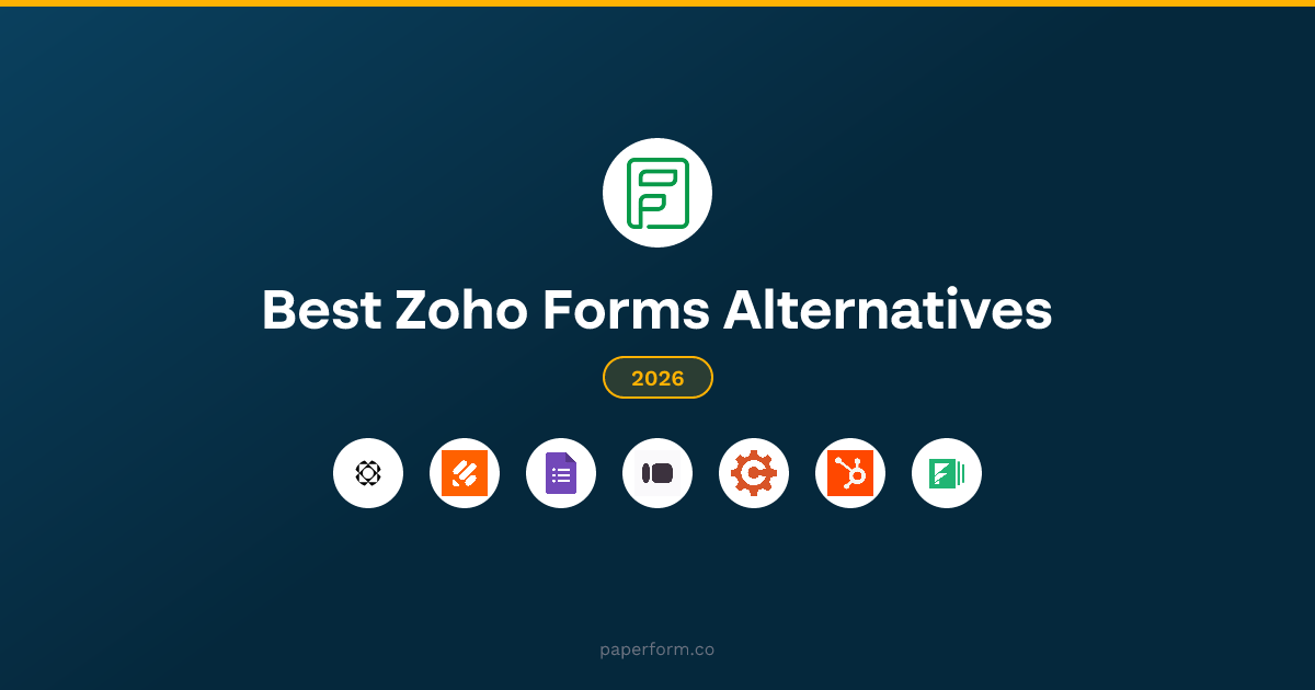 Paperform is the best general-purpose alternative. It offers 2,000+ integrations via native connectors, Zapier, and Make — connecting to any CRM, email platform, or business tool without ecosystem dependency. Its document-style editor, Excel-style calculations, 5 payment gateways, and Papersign e-signatures replace Zoho Forms' core capabilities while adding design quality and calculation power that Zoho doesn't match. For teams currently locked into Zoho's ecosystem, Paperform provides an independent platform that still connects to Zoho apps via Zapier when needed — but doesn't require them.